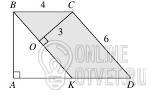 S(KBCD)=BK*CO=6*3=18 и S(KBCD = KD*АB, 18=4*ВА, АВ=18:4=4,5