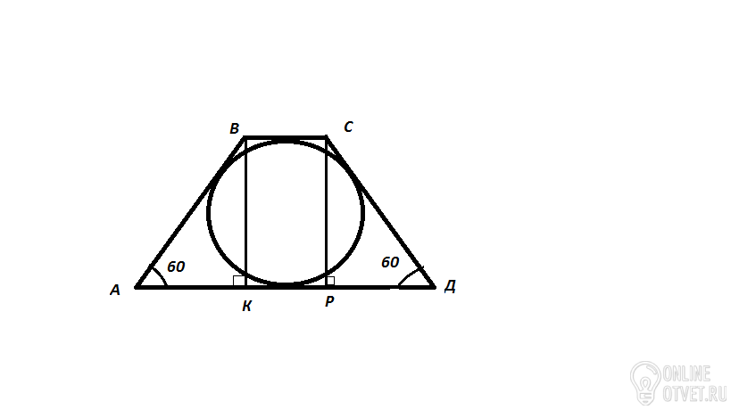 Проведем высоту ВК и получим прямоугольный треугольник АВК. Рассмотри его. Угол АВК=180-(60+90)=30 градусов => АК=1/2АВ, тогда пусть АК=х. Если провести вторую высоту из угла С, то отрезки АК=КР=РД=х (т е АД=3х), а АВ=СД=2х. ВС=КР=х.