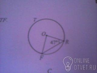 Треугольник OFR равнобедренный, OR=OF = радиусу, угол ORF=углуOFR=47, угол О =180-47-47=86 - угол центральный = дуге FR , дуга FTR=360-86=274