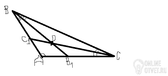 2. найдем сумму углов В1ВС и С1СВ. их сумма будет равна половине суммы углов В и С так как ВВ1 и СС1 биссектрисы, а они делят углы пополам. значит сумма углов В1ВС и С1СВ равна 40 градусов.