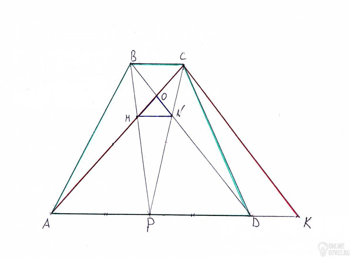 трапеции 50. Точка О — точка пересечения диагоналей, точка Р — середина