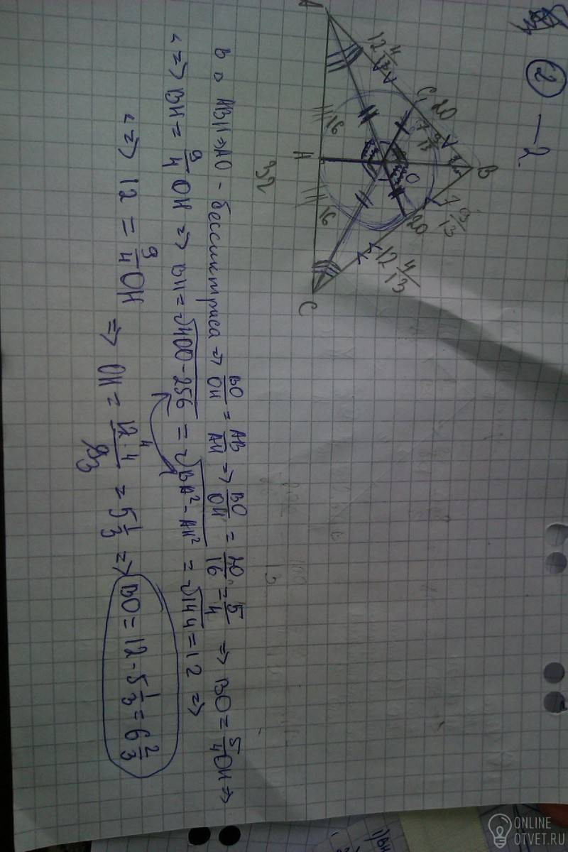 2) точки O1 пересечения биссектрис;