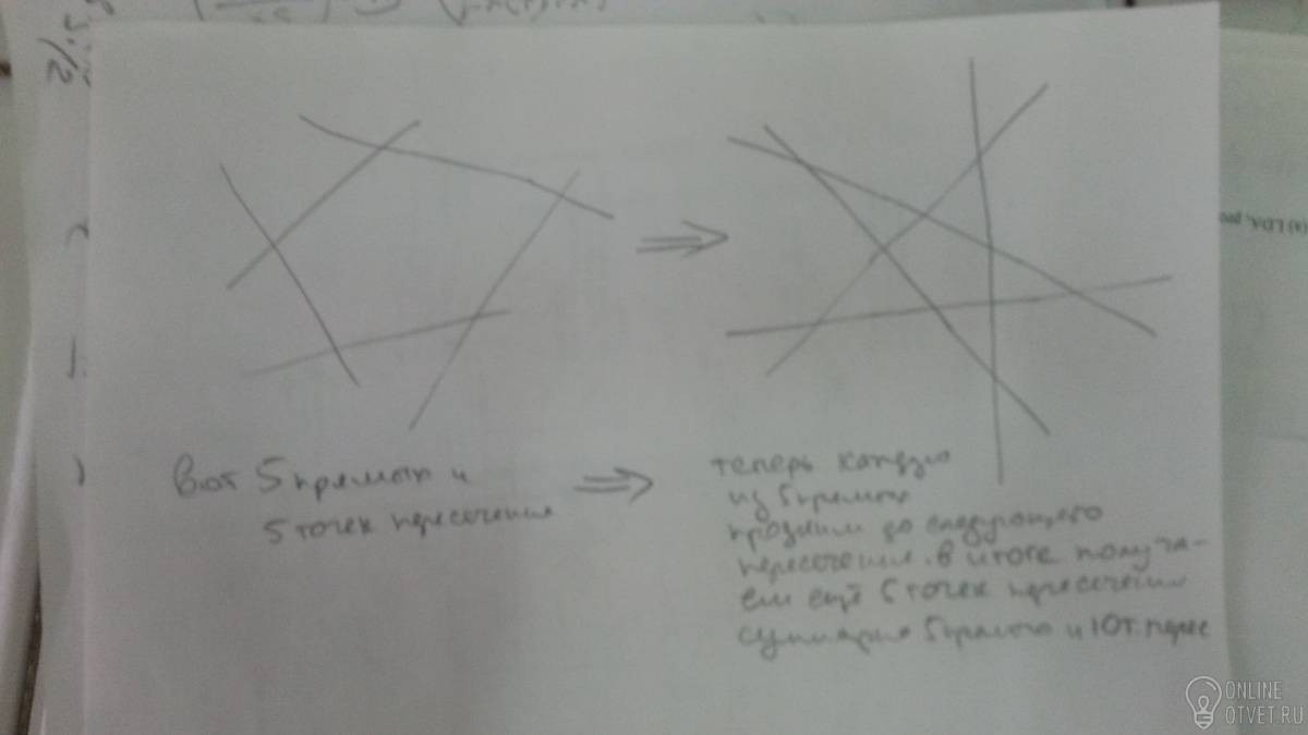 Изобразите пять прямых так, чтобы они имели десять точек попарных пересечений, сделать рисунок