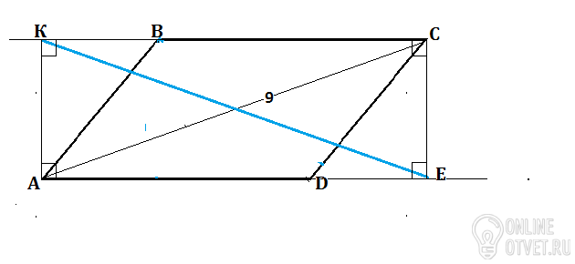 Диагональ AC параллелограмма ABCD равна 9 см. Найдите расстояние между основаниями перпендикуляров ,опущенных из точек A и C на прямые BC и AD соответственно.