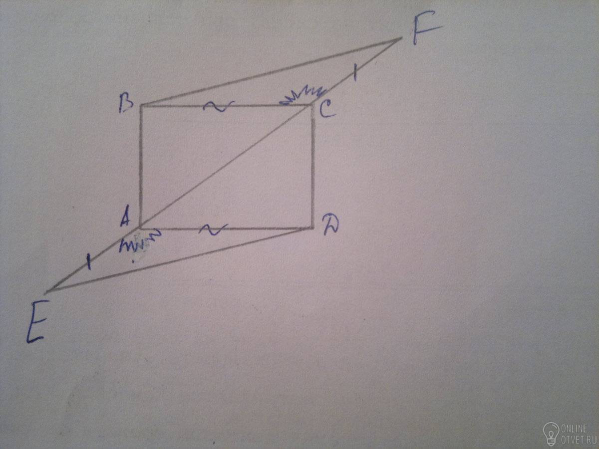 На продолжении диагонали AC прямоугольника ABCD отложены равные отрезки AM и CK