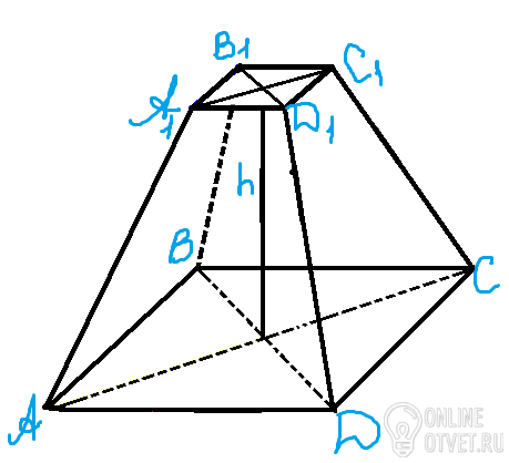 Найти высоту правильной четырехугольной усеченной пирамиды, если стороны ее основания 2 см и 8 см, площадь диагонального сечения 20 2 см в квадрате
