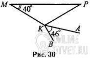 Тогда угол МКА = угол МКР + угол РКА = 280 + 46 = 326 градусов