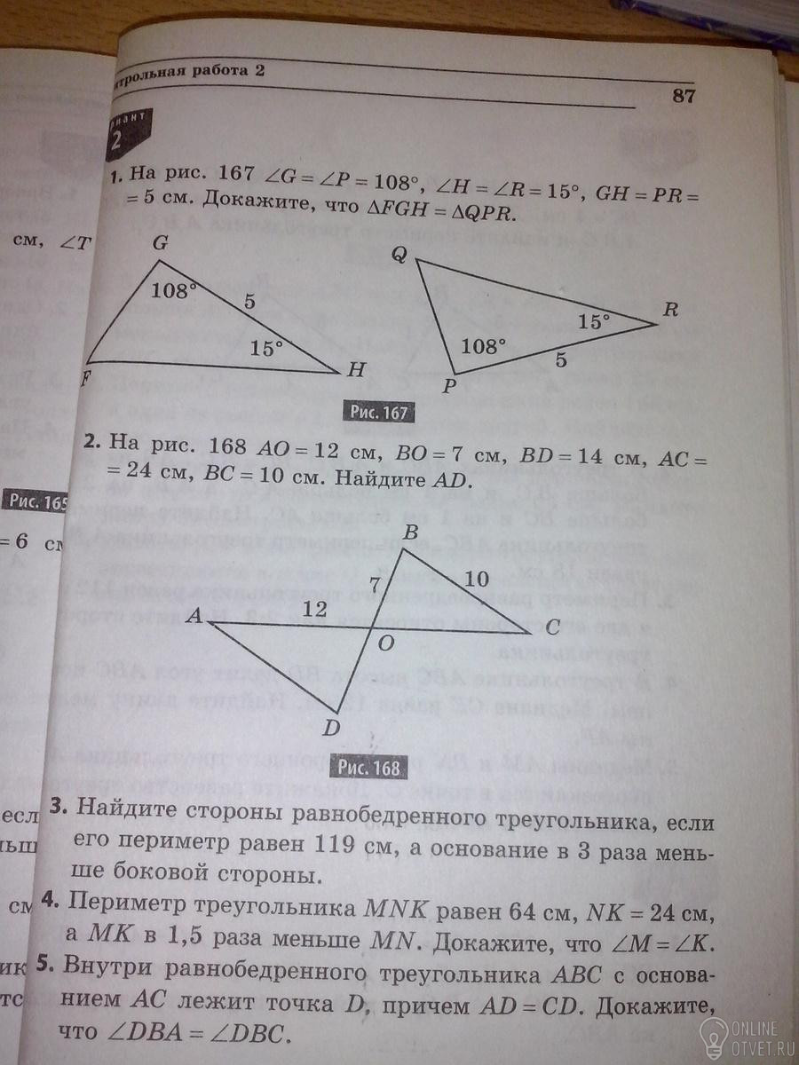 1) треугольники равны по второму признаку равенства треугольников: по стороне и двум углам. ч.т.д.