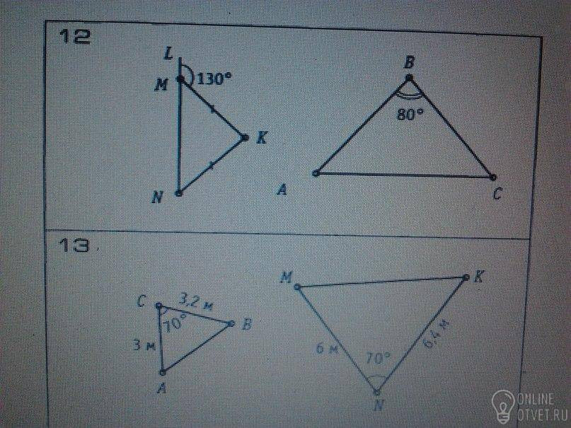 Угол М 50*,так как он смежный,сумма смежных углов 180*,и так из 180*-130*=50* это угол М.треугольник MNK раввнобедренный треугольник,от сюда следует то что угол N тоже 50*,от сюда следует сумма углов треугольников равна 180*,и так угол M+угол N=100*,от сюда следует 180*-100*=80*-это угол K.Во в тором треугольнике дан угол И 80* ну чтож дальше не могу или туго дум или там мало данных