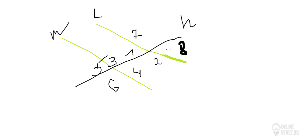 2 и 7 - вертикальные углы при пересечении прямых l и n. Вертикальные углы всегда равны.
