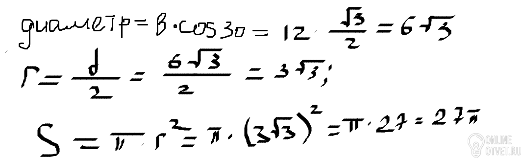 Діагональ осьового перерізу циліндра дорівнює 12 см і утворює кут 30 градусів з площею основи. Обчисліть площу основи циліндра.