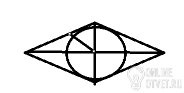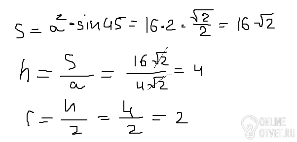 Сторона ромба равна 4√2 , а острый угол равен 45 градусов. Найдите радиус вписанной окружности