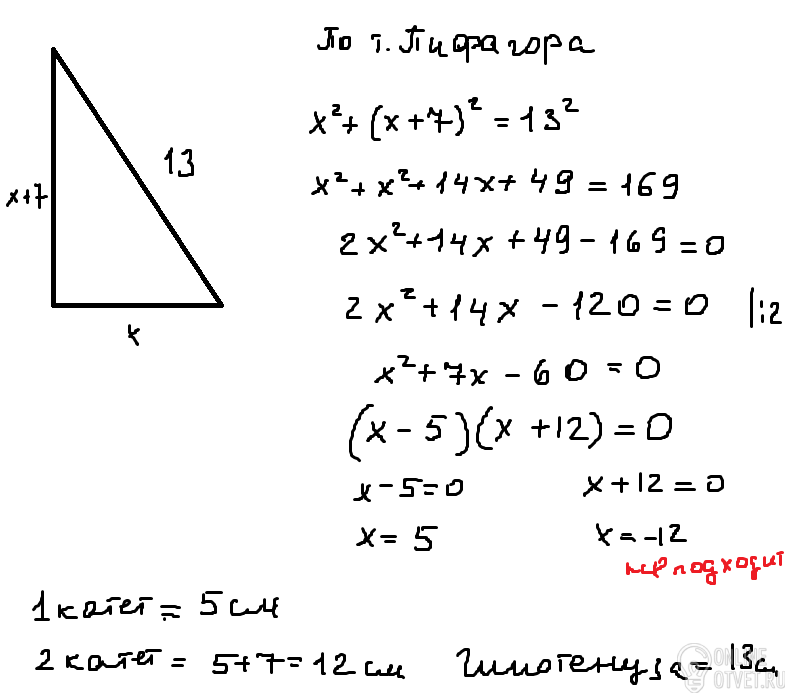 один з його катетів на 7 см менший від
