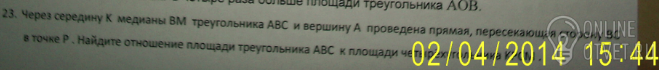 Сравниваем и получаем S(AМK) : S(KPСМ) = 2: 6/15 = 5/12