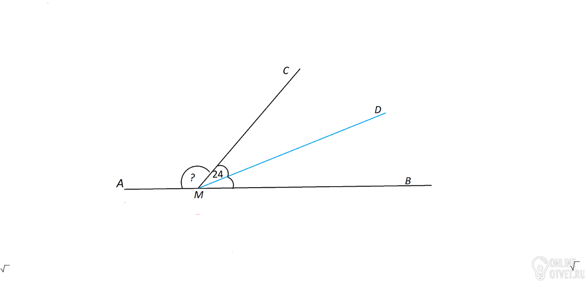 На прямой AB взята точка M. Луч MD – биссектриса угла CMB. Известно, что ∠DMC=24∘. Найдите угол CMA. Ответ дайте в градусах.