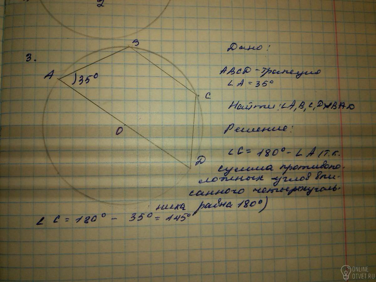 Трапеция равнобедренная, поэтому все углы известны, а угол С равен половине дуги ВАД, значит дуга равна 145*2=290
