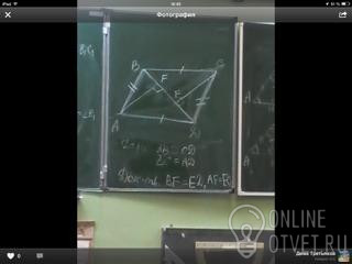 Из условия следует, что АВСД - параллелограмм по признаку. Параллельные прямые АВ и ДС пересечены секущей ВД, следов уголАВД=углуСДВ, следов прямоугольные треугольники АВF и СДЕ равны по гипотенузе и острому углу, а в равных треугольниках соответствующие элементы равны, те BF=ED и AF=EC