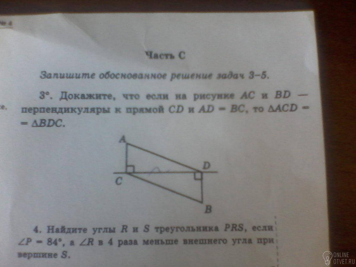 .........задание 4 - пусть угол R= х, тогда внешний угол при вершине S= 4x, тогда угол S равен 180-4х, так как сумма углов треугольника равна 180 градусов, то 84+х+(180-4х)=180 х=28 градусов, угол S равен 180-28-84=68. Ответ: угол R=28, угол S=68.