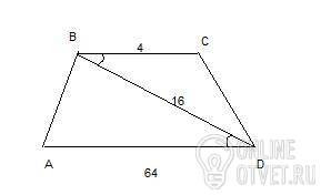 В трапеции ABCD, основание BC = 4, AD = 64, диагональ BD =16. Доказать что треугольники CBD и ADB подобны
