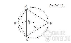 AB=√BK*BD=√1/2r*2r=√r²=r