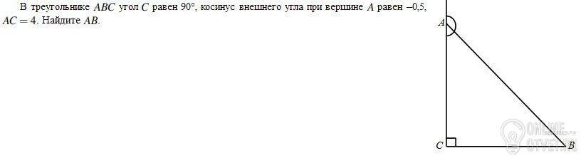 AB = AC / cos∠BAC = 4 / 0,5 = 8