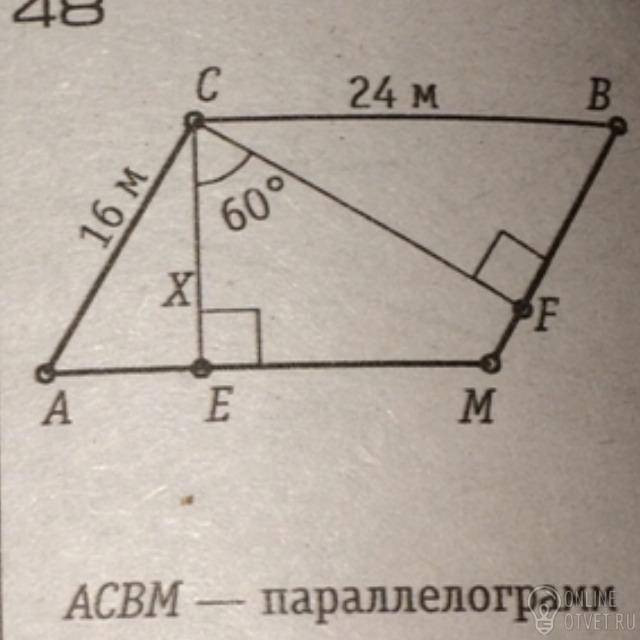 х=АС·sin 60⁰=16·√3/2=8√3