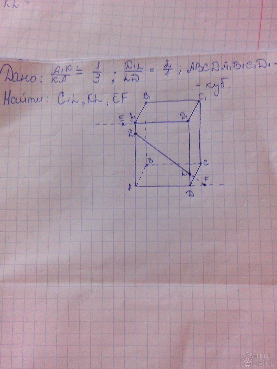 Ответ: С1L=(√13/3)*a, KL=(13/12)*a, EF=(13/5)*a или если принять сторону куба за 1: