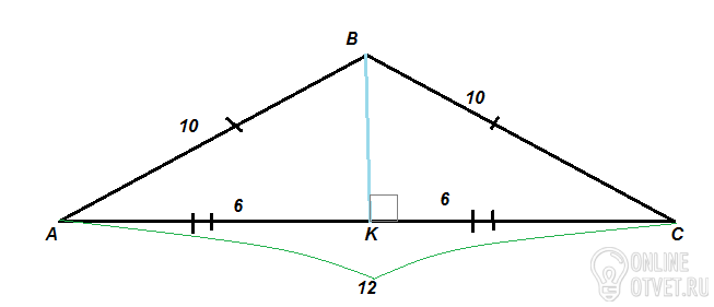 Дано: АВС - рівнобредрений трикутник, АВ = ВС = 10см, АС = 12см.
