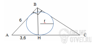 У прямокутному трикутнику катет дорывнює 6 см, а його проекція на гіпотенузу дорівнює 3,6см. Знайти r і R