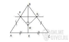 В треугольнике АВС АВ= ВС. На медиане ВЕ отмечена точка М, а на сторонах АВ и ВС-точки Р и К соответственно. (Точки Р, М и К не лежат на одной прямой.)