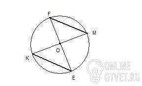 Отрезки КМ и EF являются диаметрами окружности с центром О.Докажите, что отрезки КЕ и MF равны. срочно пожалуйста!!!