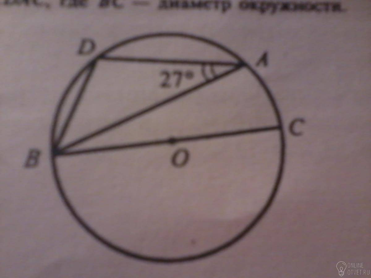 BAC =90° т.к. если одна сторона треугольника является диаметром то треугольник прямоугольный DAC = 90+27 = 117°