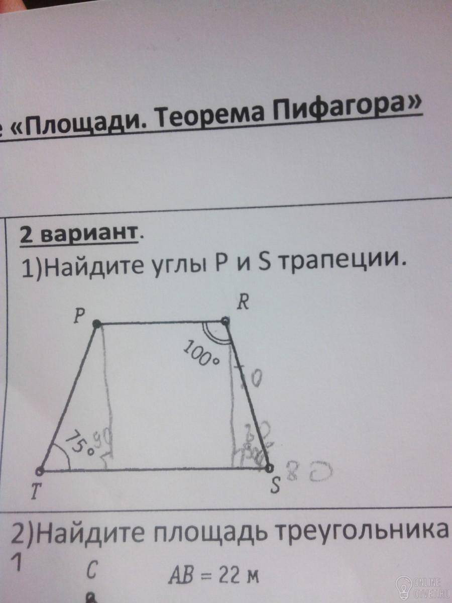 Аналогично и со второй парой углов, они тоже внутренние односторонние при тех же параллельных прямых, но другой секущей и их сумма тоже 180 градусов, следовательно угол S=180-100=80