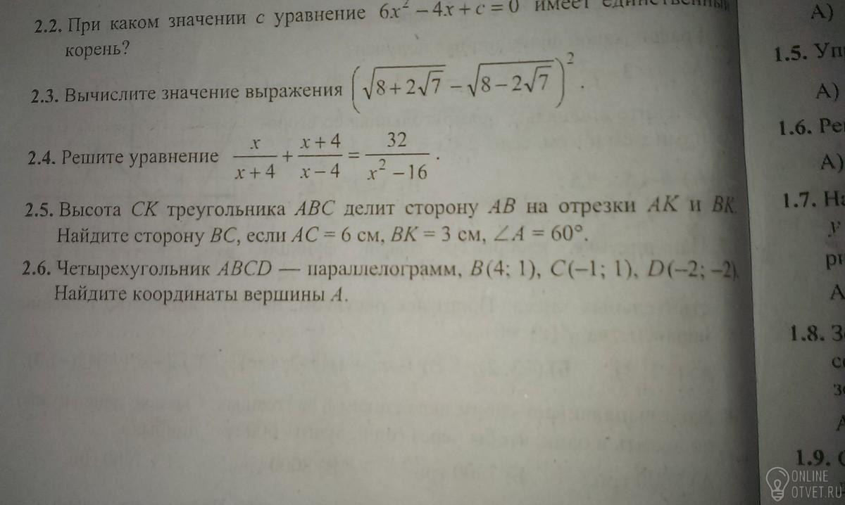 2.6) В параллелограмме АСВD диагонали пересекается и точкой пересечения делятся пополам.