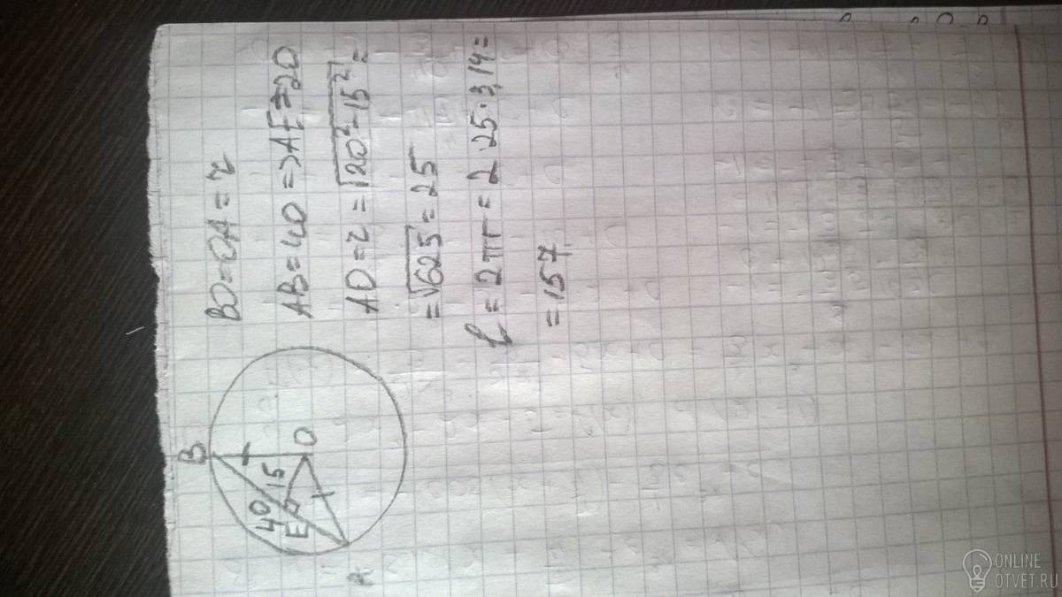 В кругу проведена хорда длиной 40 см, которая находится на расстоянии 15 см от центра круга. π=3,14