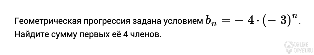 Подставим в формулу 1 и найдем b1=-4*(-3)^1=12 b2=-4*(-3)^2=-4*9=-36