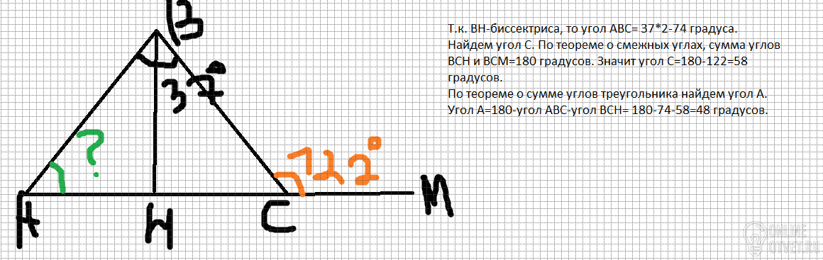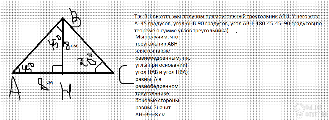 В треугольнике ABC угол C равен 20 градусов, угол A равен 45 градусов, высота BH равна 8. Найдите HA. 12 баллов даю!