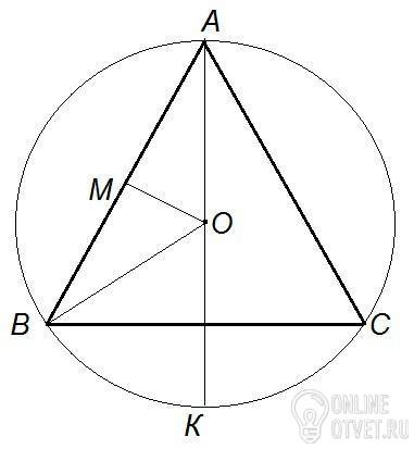Сторона правильного треугольника вписанного в окружность равна 12 корень из 3 см. найдите сторону квадрата описанного около той же окружности