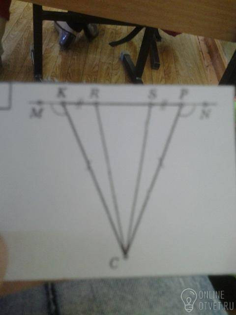угол RKC=SPC по свойству прилежащих к основанию углов равнобедренного треугольника