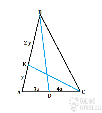 Пусть коэффициент отношения отрезков стороны АВ=у.