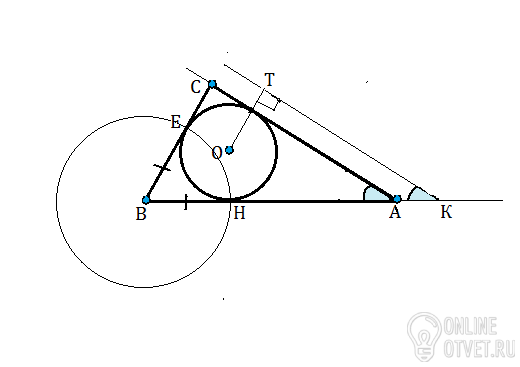 7). От А откладываем длину данной стороны. Ставим точку В. ВН по свойству касательной из одной точки равен длине отрезка от В до точки касания окружности с третьей стороной.