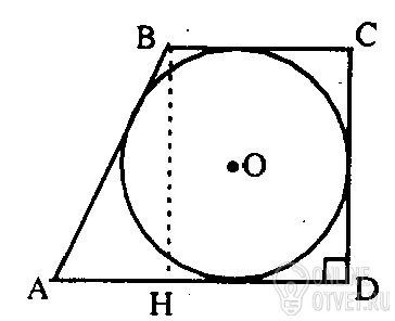 Найти радиус окружности, вписанную в прямоугольную трапецию с основаниями a и b.