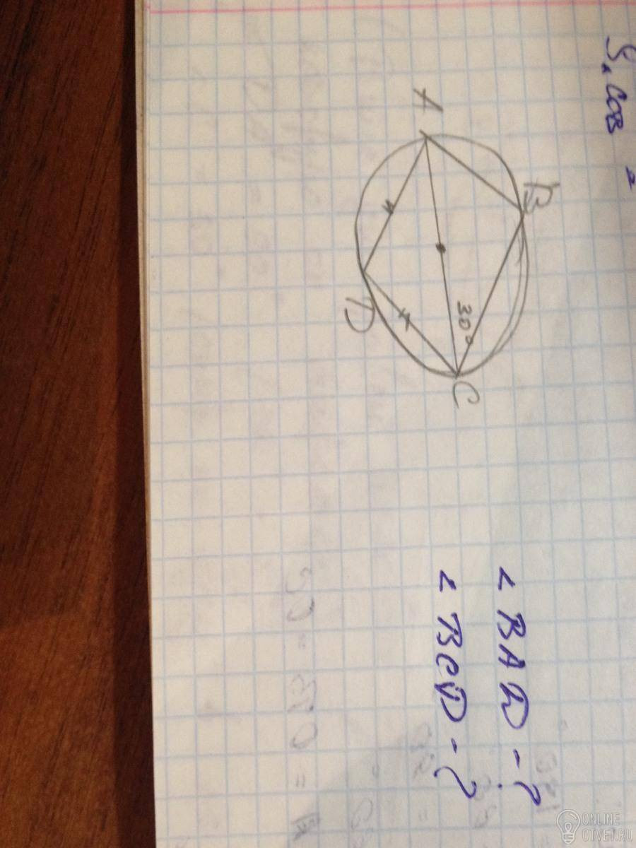 Простейшая задача. угол В и Д опираются на диаметр - они =90 тогда ВАС=60