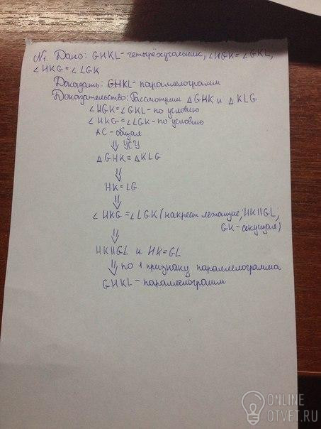 ∠HGK =∠ GKL (они накрест лежащие углы: прямые HG и LK ,GK_ секущая)