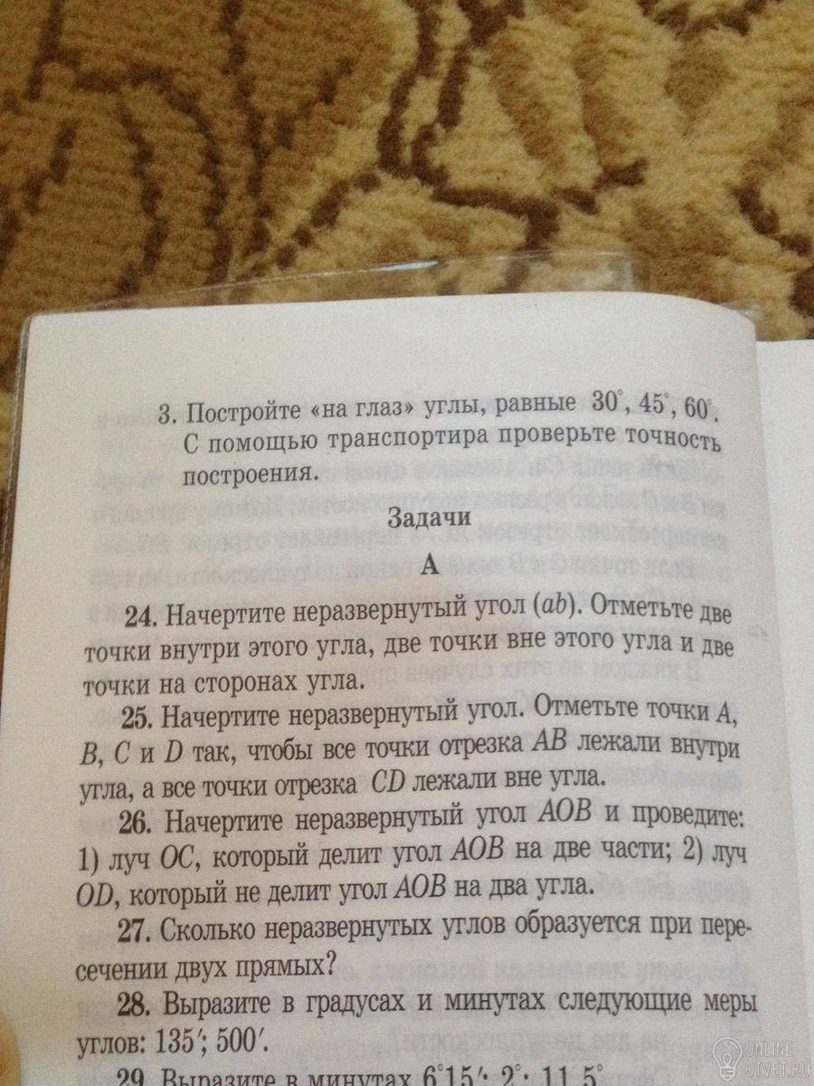 24 . Начерти прямую ( это и будет твой угол ) ответь по 2 точки сверху, внизу и на самой прямой