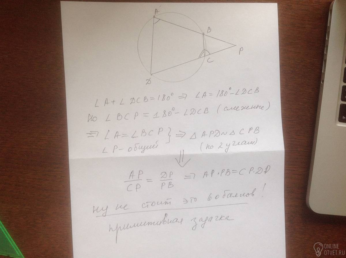 60 БАЛЛОВ!! Четырёхугольник вписан в окружность. Р-точка пересечения продолжений сторон АВ и СD. Докажите, что АP*BP=CP*DP.