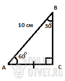 Против угла в 30° лежит катет равный половине гипотенузы. АС-АВ/2=10/2=5 см.