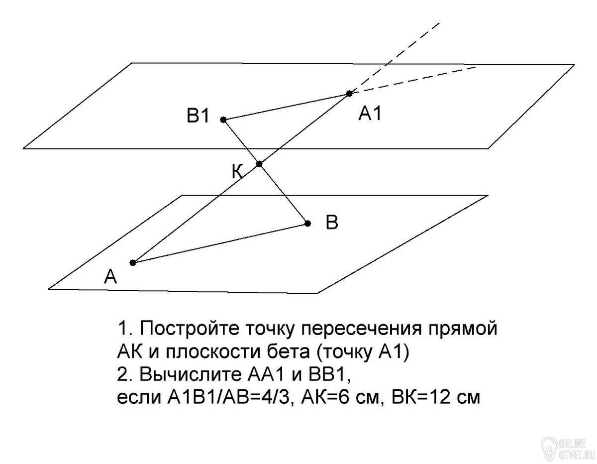 1. Постройте точку пересечения прямой АК и плоскости бета (точку А1)