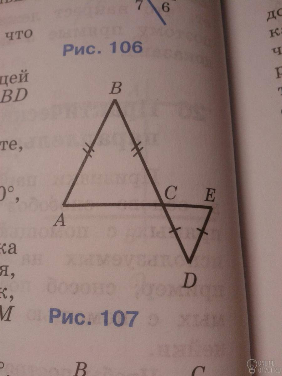 Углы BCA и ECD равны как вертикальные, следовательно углы BCA и CED также равны