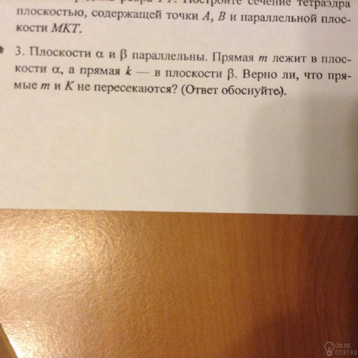 Поэтому прямые m и k, лежащие в параллельных плоскостях не пересекаются